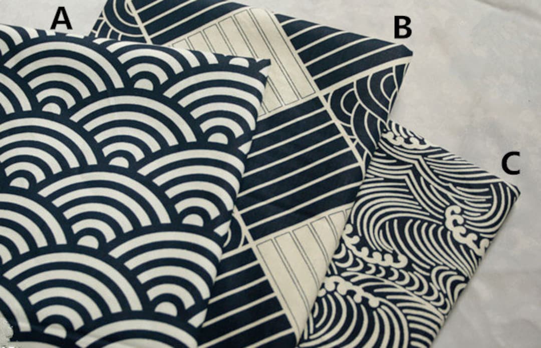 Three Types Of Vintage Japanese Cotton Fabric With Dark Navy Etsy New Zealand